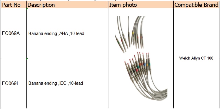 Comaptible Welch Allyn CT 100 dây dẫn ecg, 10 đầu, kết nối cáp EKG