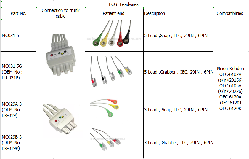 Compatiblw với Nihon Kohden BR-019P, BR-021P 3/5 bộ chì ECG, snap / Grabber
