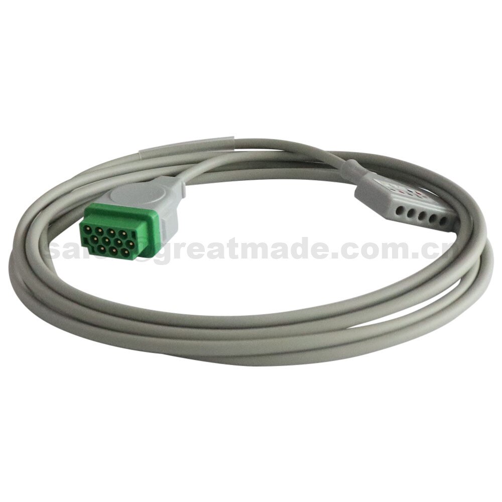 Cáp ECG tương thích với GE Dash, xe điện, loạt năng lượng mặt trời, đầu Din, 3 dây dẫn