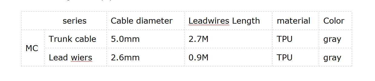 Áp dụng cho màn hình đa thông số / máy điện tâm đồ / tập luyện máy chạy bộ hoặc máy khử rung tim, truyền tín hiệu điện sinh học của cơ thể người. Cáp bệnh nhân và dây dẫn điện cực được sử dụng để kết nối các điện cực, ống thông và / hoặc cảm biến được đặt ở vị trí thích hợp trên bệnh nhân với thiết bị theo dõi để theo dõi chung và / hoặc đánh giá chẩn đoán bởi chuyên gia chăm sóc sức khỏe