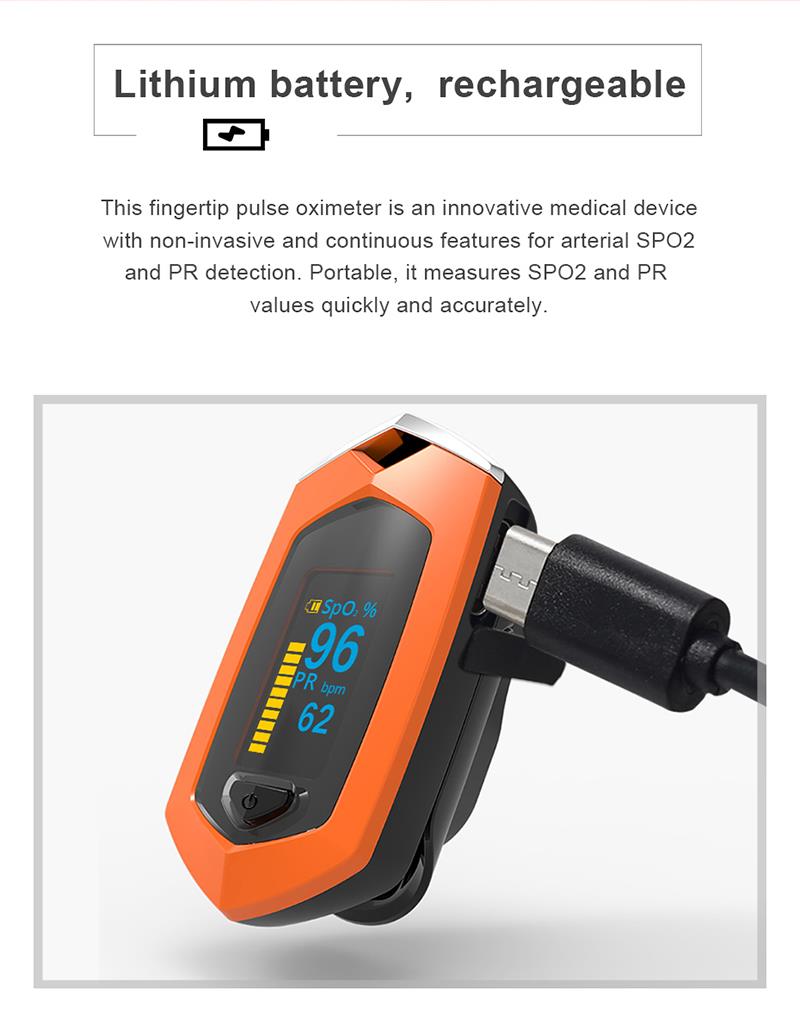 Một ngôi sao quan trọng, Có thể sạc lại, Cảm biến tăng tốc, tự động tắt 8 giây, đo PR & SPO2, Di động đơn giản